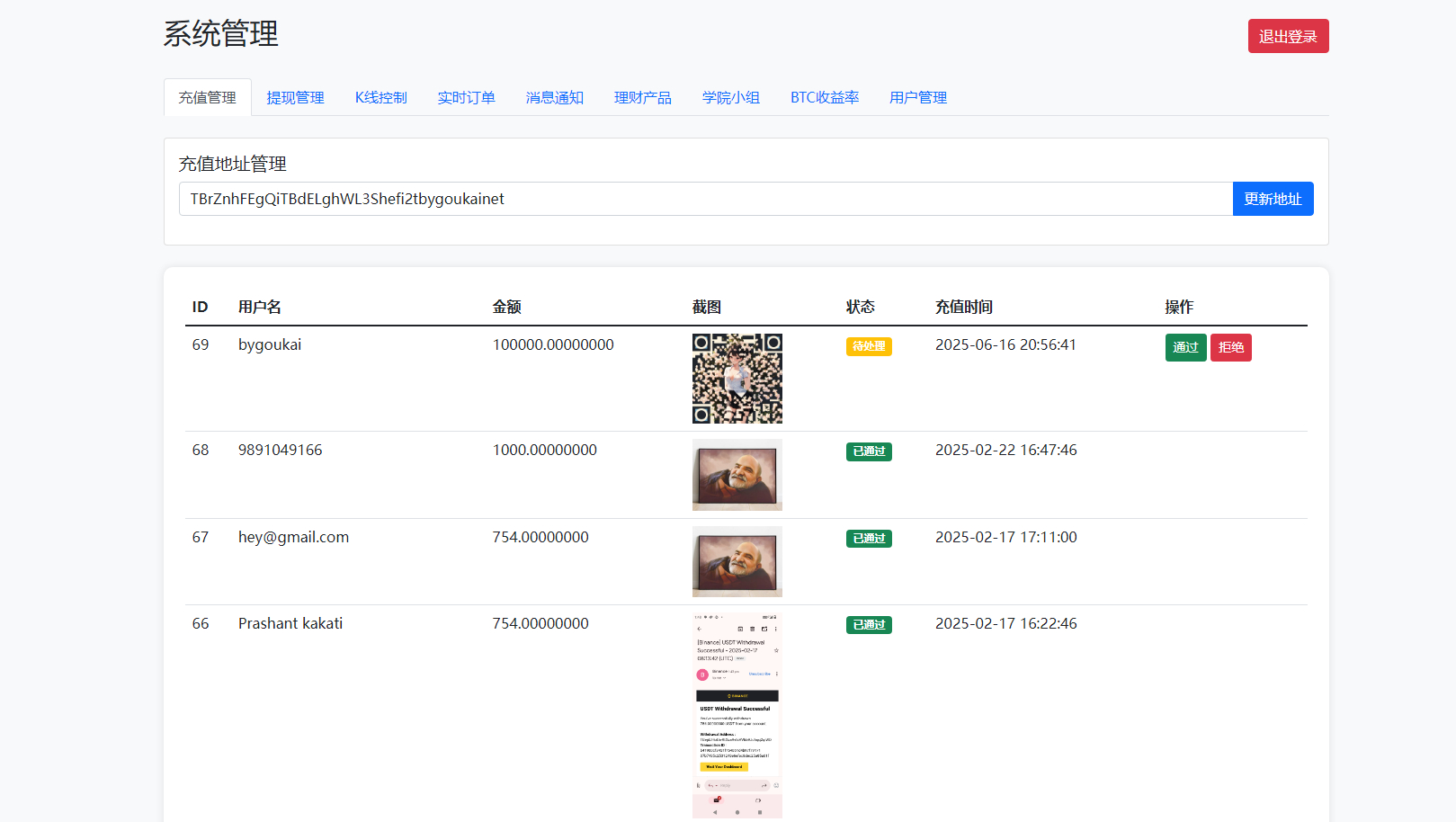 主要测试了k线行情控制、用户输赢控制、订单输赢控制,非常好用,各个功能都正常,还有代理功能