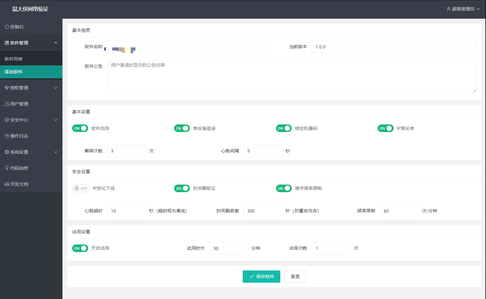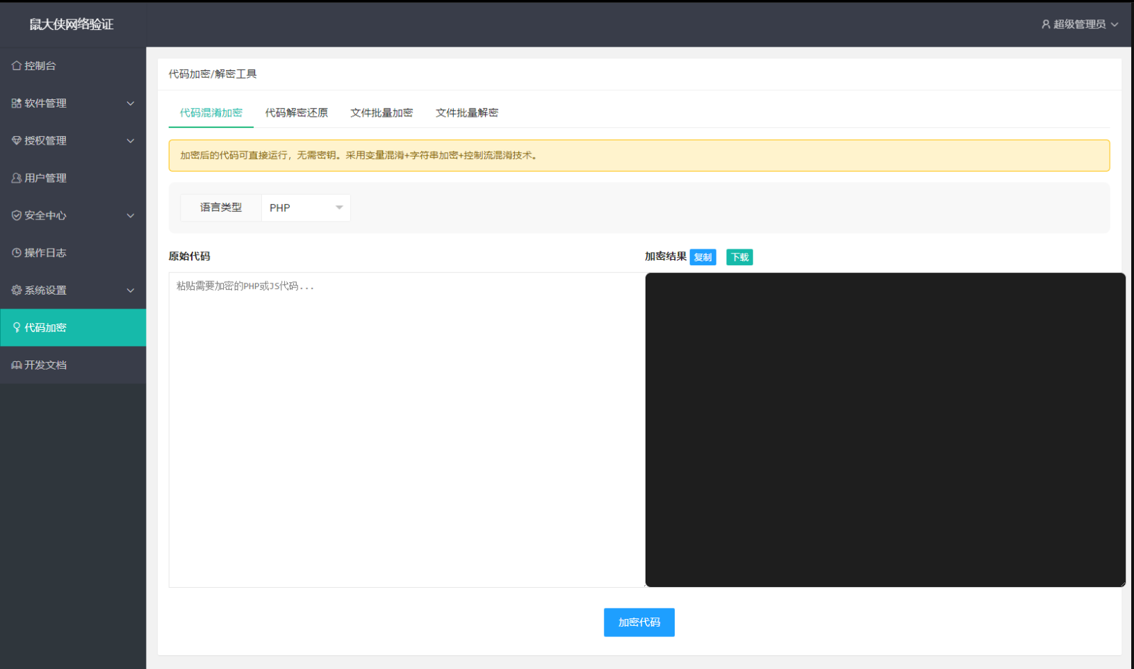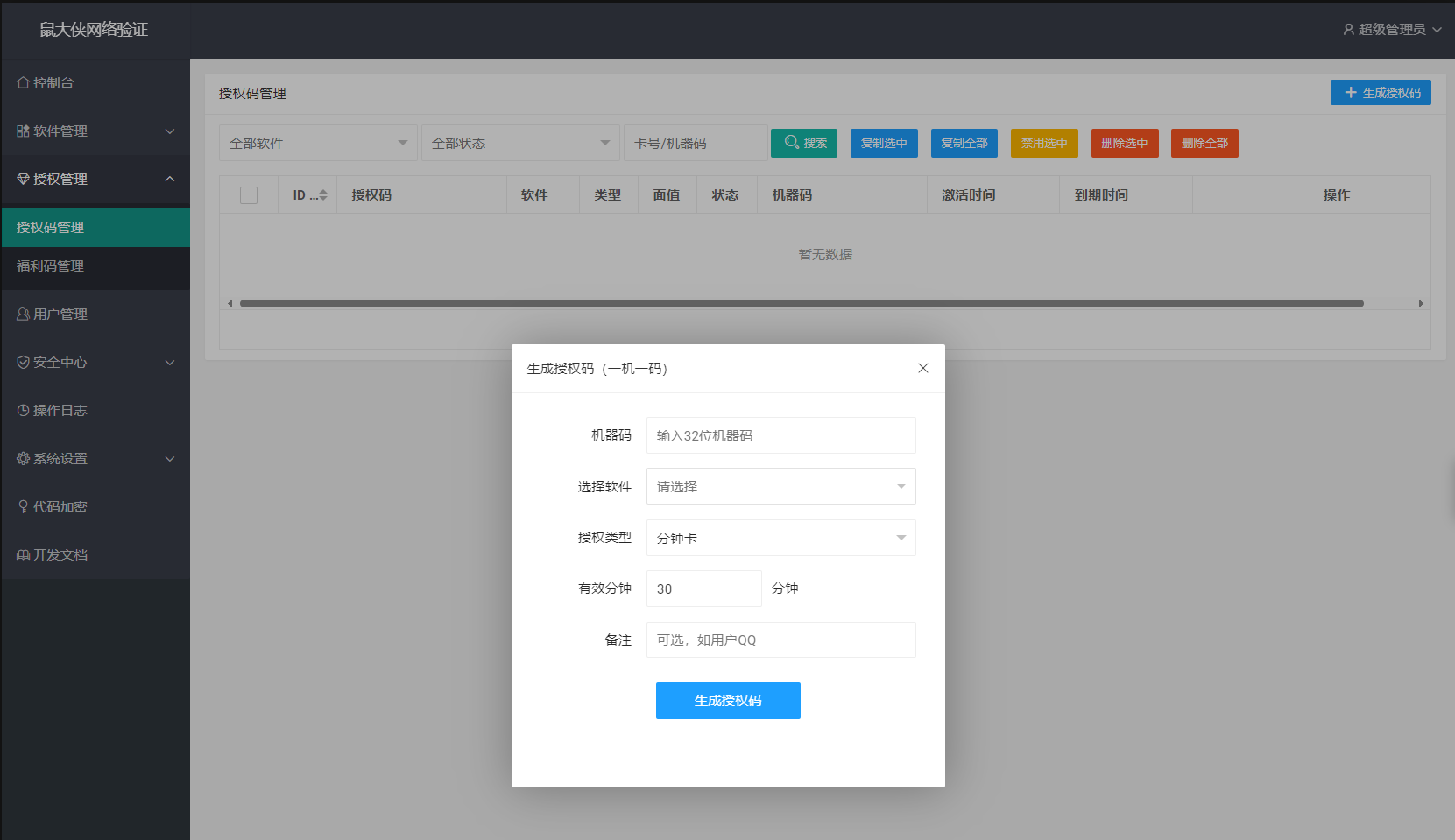 鼠大侠网络验证系统源码 一机一码授权验证 全开源
