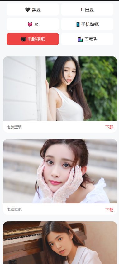 源码默认包含6个热门壁纸分类,适配不同用户需求,分类名称和对应接口可自由修改,无需复杂操作: