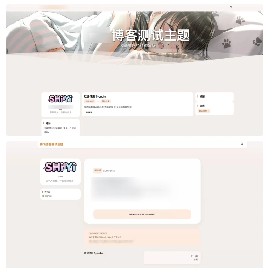 分享 Typecho SHIYI-TI 开源主题,继承 Mizuki 简约风格,界面清爽、阅读体验佳,完美适配桌面、平板、手机端。全开源免费,支持自主部署,轻松搭建简约风格博客站点。